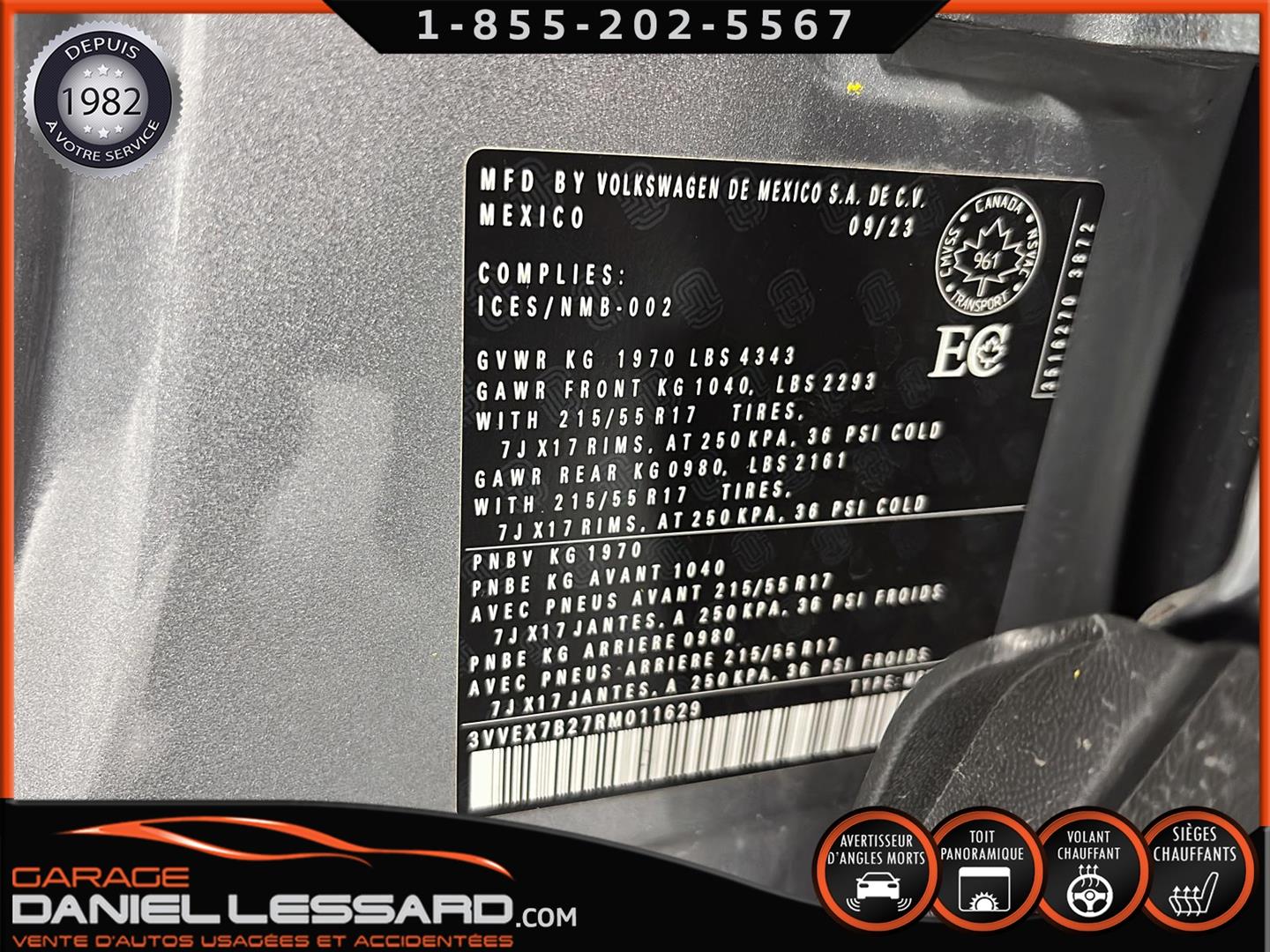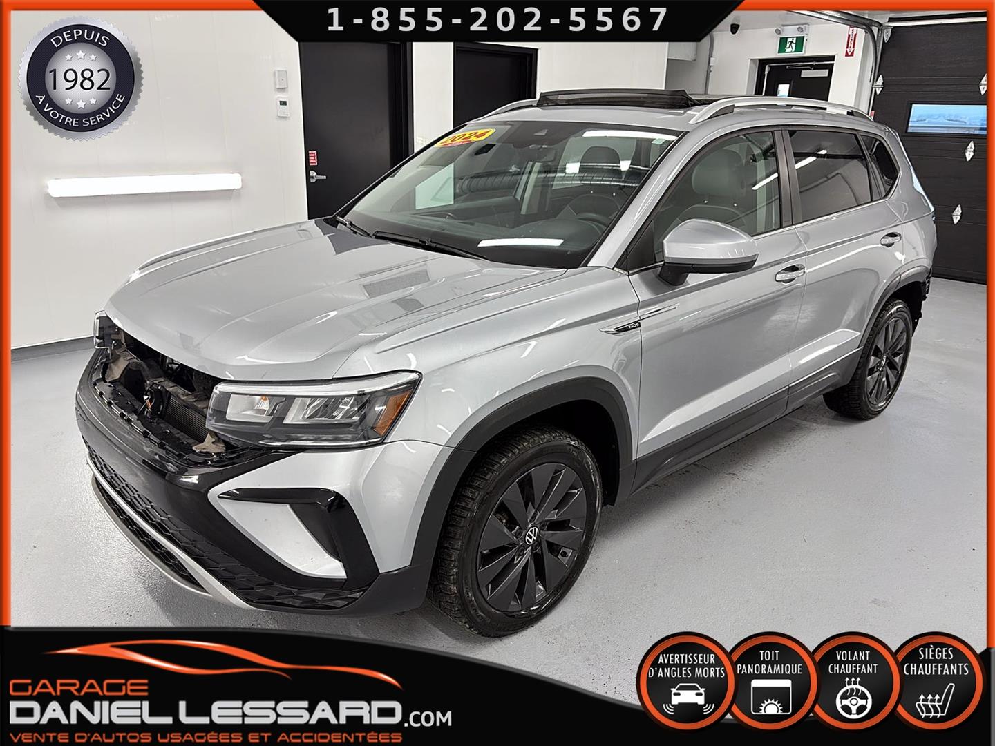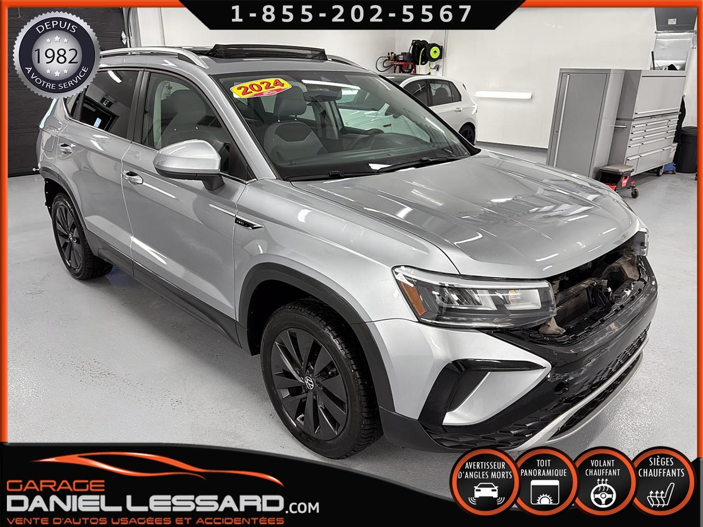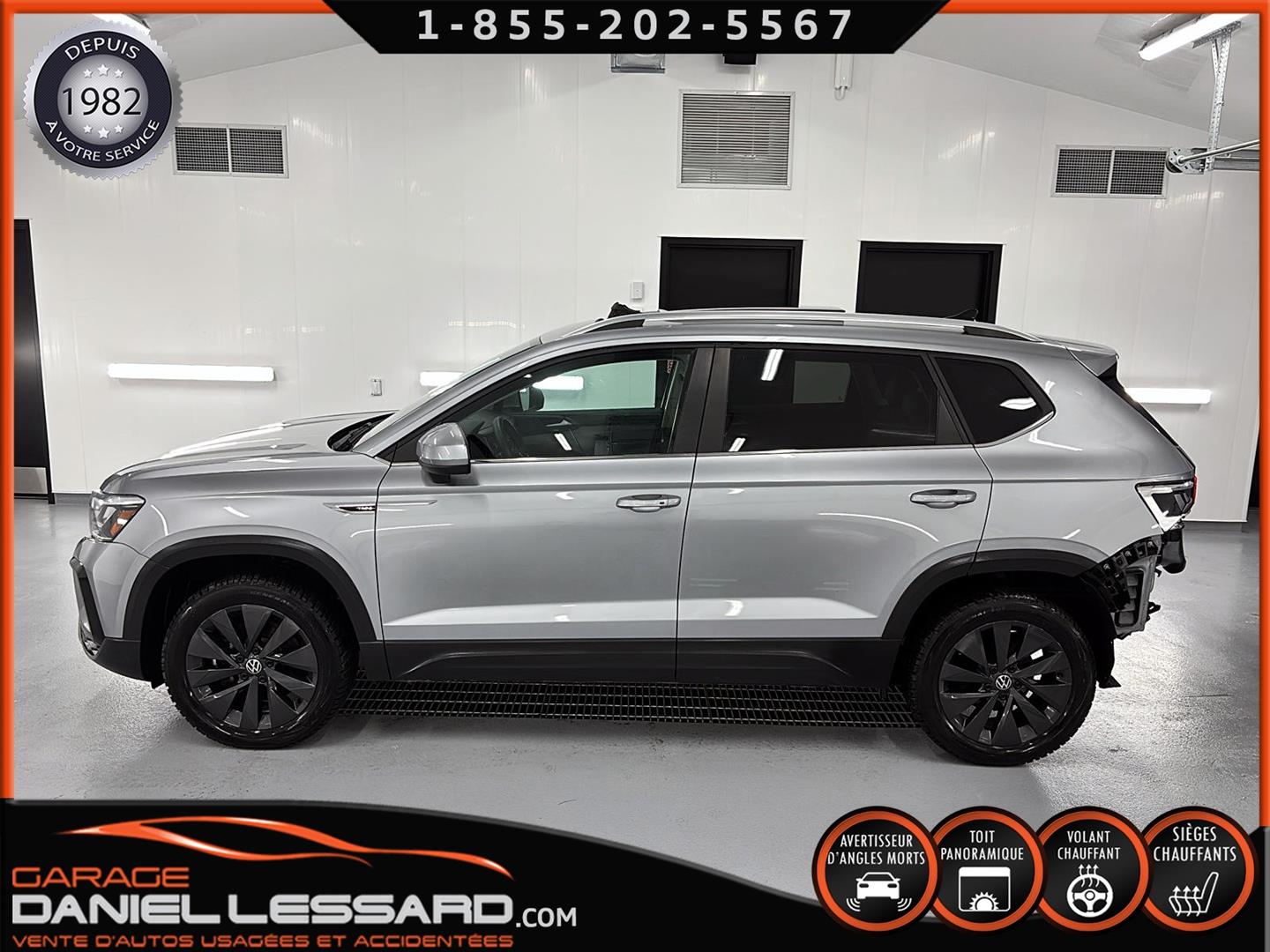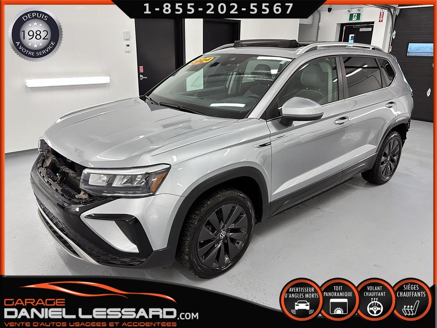 2024 VOLKSWAGEN TAOS, COMFORTLINE, 2X4 TRACTION AVANT, ***57846 KM***, TOIT PANORAMIQUE OUVRANT, RADIO COMPATIBLE AVEC APPLE CARPLAY ET ANDROID AUTO, CLIMATISATION BIZONE, DÉTECTEUR D'ANGLE MORT, CRUISE ADAPTATIF, SIÈGES CHAUFFANT, VOLANT CHAUFFANT, NOUS AVONS SEULEMENT 1 CLÉ AVEC LE DÉMARREUR D'ORIGINE. MAG 17 POUCES AVEC PNEUS GENERAL ALTIMAX ARCTIC12 EN 215-55-17